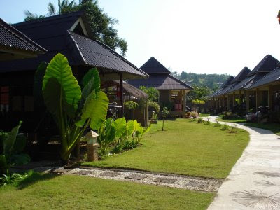 No bus conheci um casal de escoceses e um malaio muito simpáticos e como a viagem - de avião, mais bus e mais barco - demorou mais tempo do que eu pensava, quando cheguei estava de rastos e não me apeteceu andar com a mochila às costas à procura de alojamento e por isso acabei por ficar no mesmo resort que os escoceses que já tinham feito a reserva...